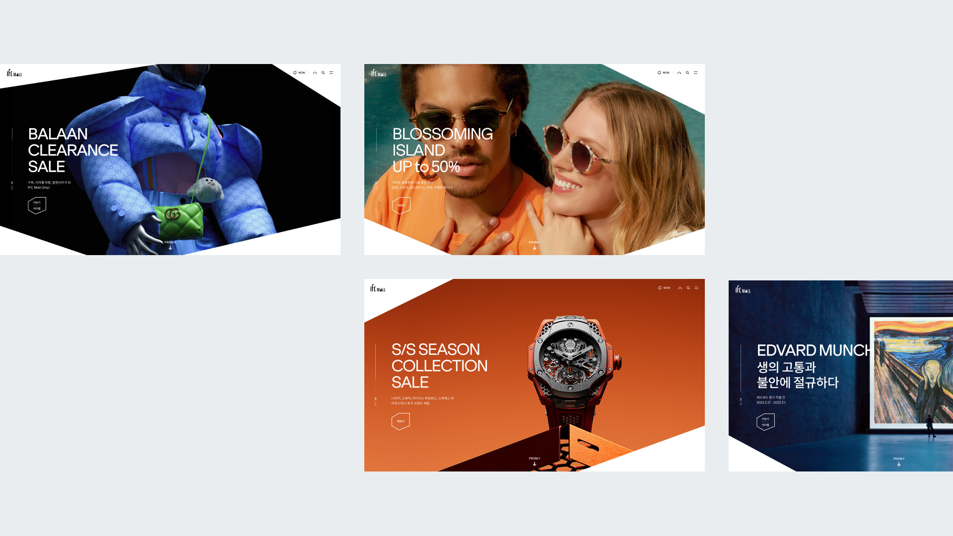 '답은 언제나 현장에 있다'. 너무 뻔한 말이죠? 저는 이 말을 믿어요. 온라인 업무를 하는 우리에게도 해당하죠. 2022년도 IFC몰 개편 제안 OT 이후에 가장 먼저 한 일은, IFC몰을 둘러보는 일이었어요. IFC몰을 이용해 본 적은 있었지만, 소비자 관점에서 꼼꼼히 살펴보고, 곰곰히 생각해 볼 필요가 있었거든요. 제안을 마무리할 때까지 저와 동료들이 각각 두세번씩은 가보았으니, 열번 가까운 경험들이 쌓였어요. 그리고 백여 장이 넘는 사진과 자료들은 캐나다에 있던 CD 에게도 전달이 되었어요. 홈화면의 디자인 시안이 나왔을 때 저는 깜짝 놀랐어요. 제가 현장을 처음 둘러보던 그때의 느낌에 클라이언트가 원하던 바가 정확하게 반영된 모습이었거든요. 밝고 쾌적해서 쇼핑하기 좋고, 매일 매일 무든 일이 일어날 것 처럼 호기심을 자극하는....